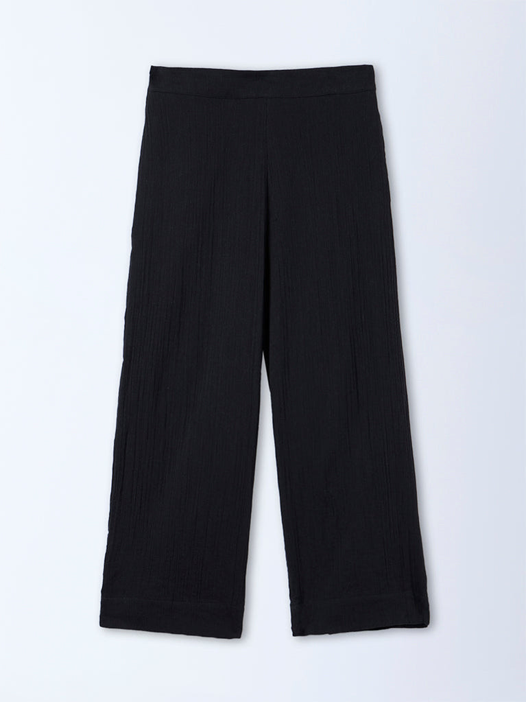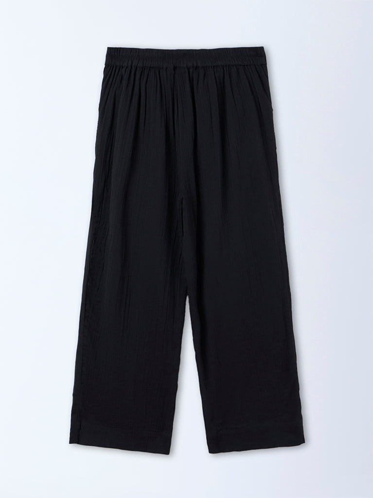 Gia Black Crinkle-textured High-Rise Cotton Pants