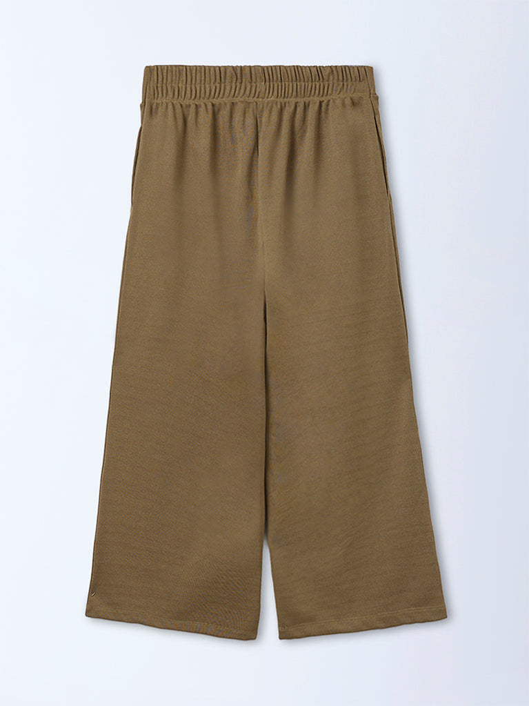 These olive-hued pants from Gia are designed for easy, everyday comfort. Crafted from a softly textured fabric, they feature a flattering high-rise silhouette with an elasticated waistband and functional side pockets. Effortless to style with solid or printed tunics and tees, they are a versatile addition to relaxed wardrobes.