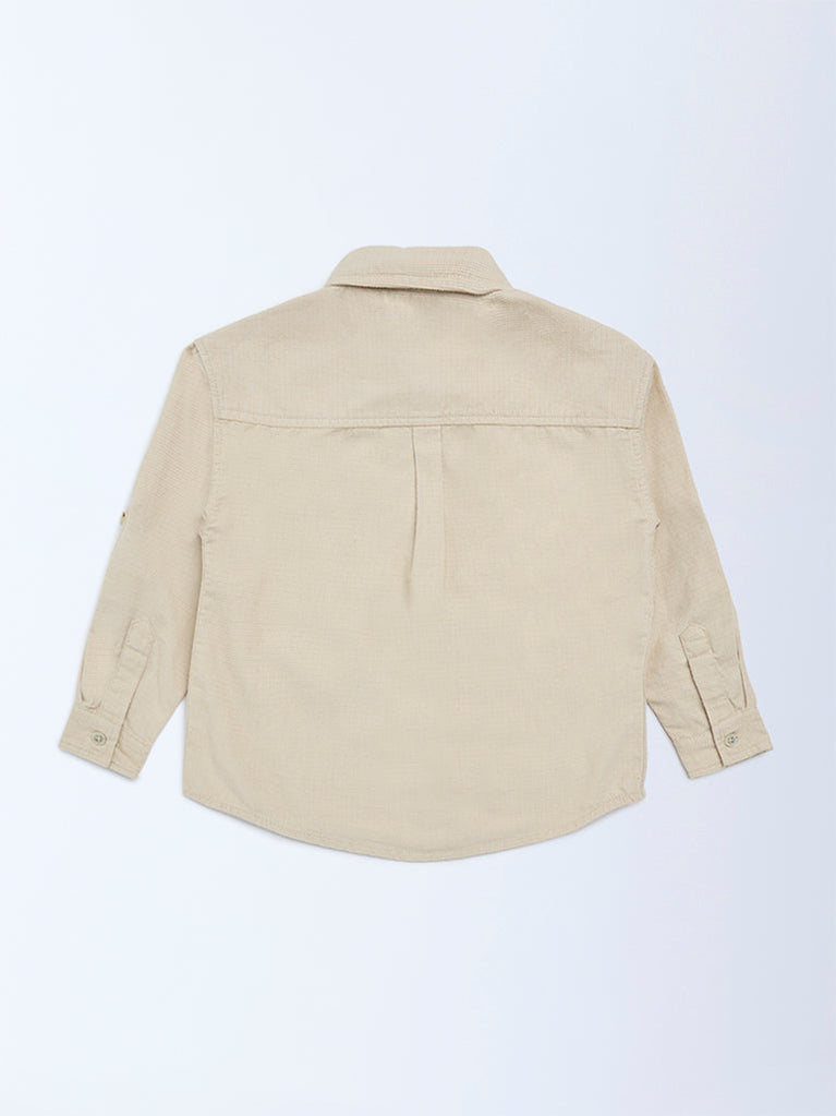 This light beige shirt from HOP Kids brings a neat, effortless charm to your little one's wardrobe. It is styled with a classic collar, buttoned placket and full sleeves, complemented by a chest pocket for a relaxed, put-together finish. Crafted from pure cotton, it keeps them comfortable through the day.