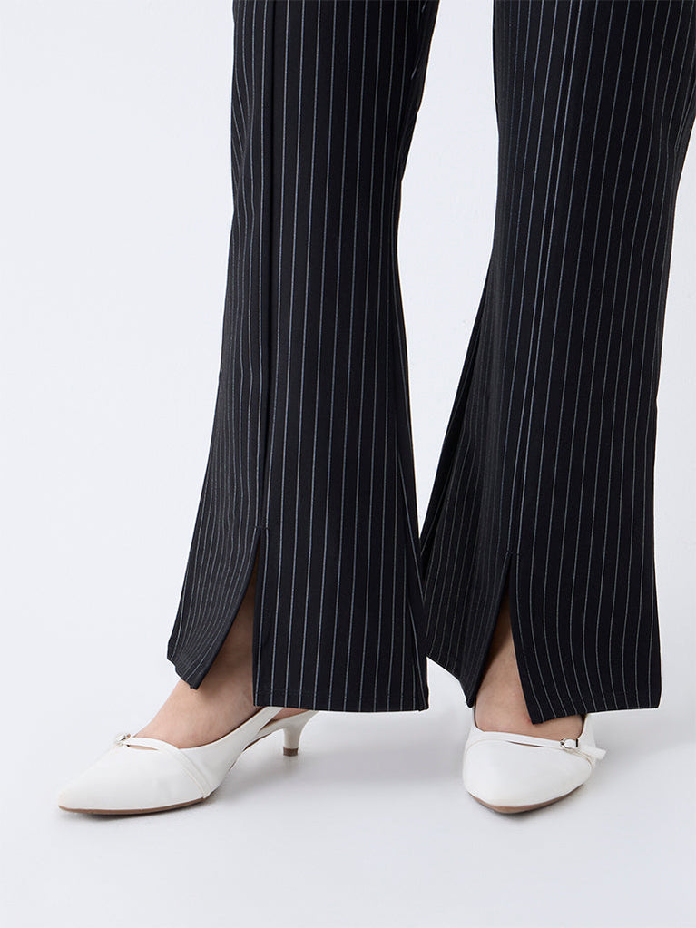 Gia Black Pinstriped High-Rise Bootcut Trousers