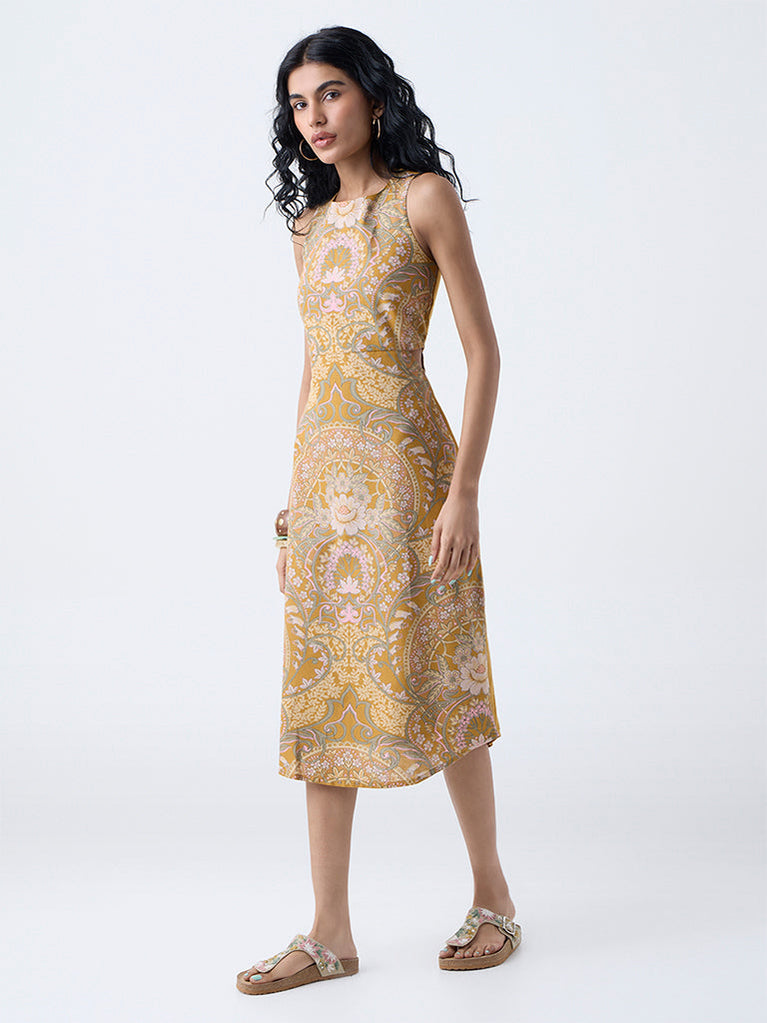 Bombay Paisley Mustard Paisley Design Cotton A-Line Dress