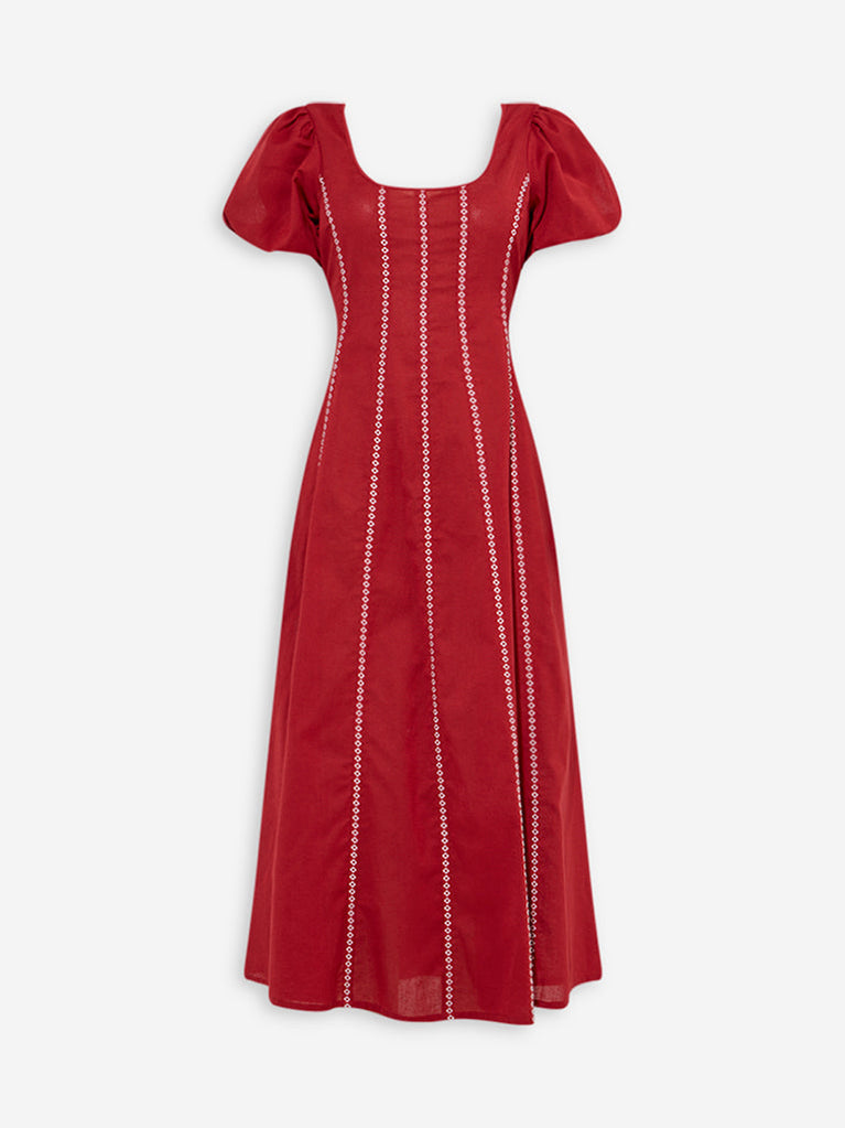 Bombay Paisley Red Embroidered Cotton-Blend A-Line Dress
