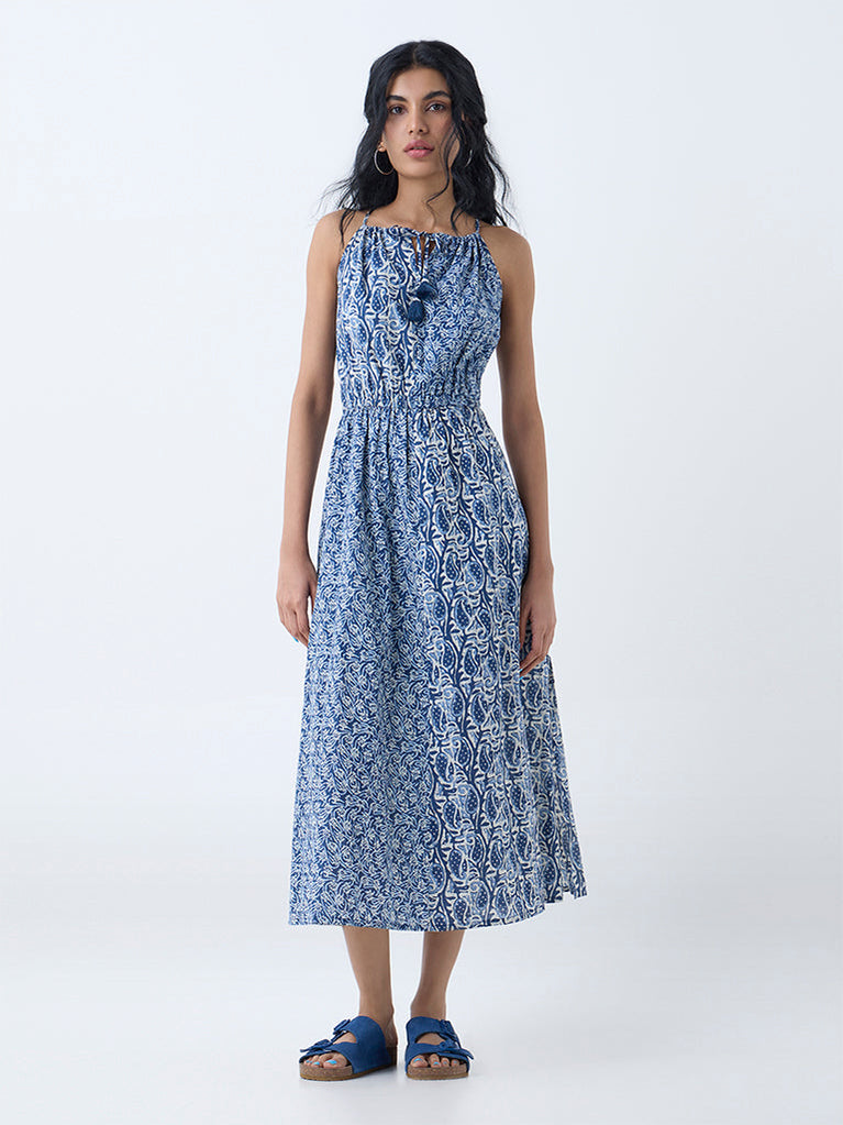 Bombay Paisley Dark Blue Printed Cotton A-Line Dress