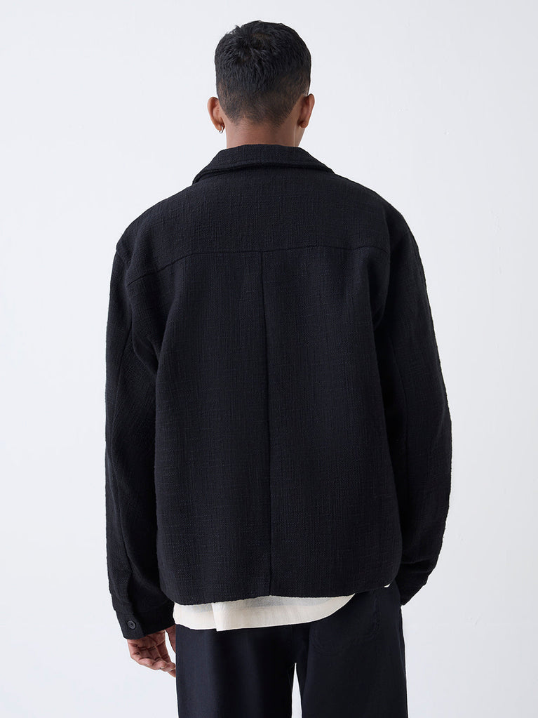 ETA Black Embroidered Relaxed-Fit Cotton Jacket