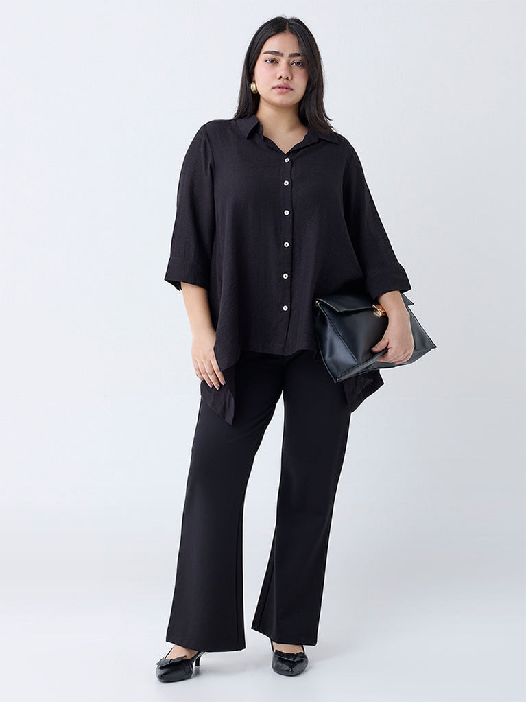 Gia Black Solid Asymmetric Shirt