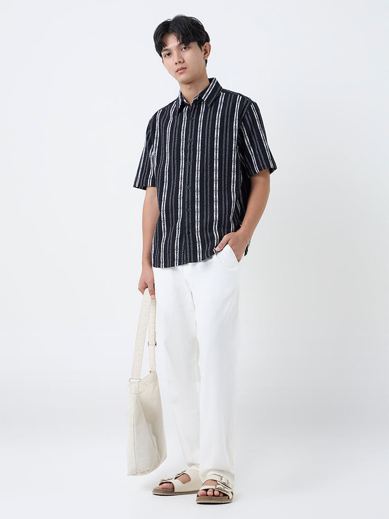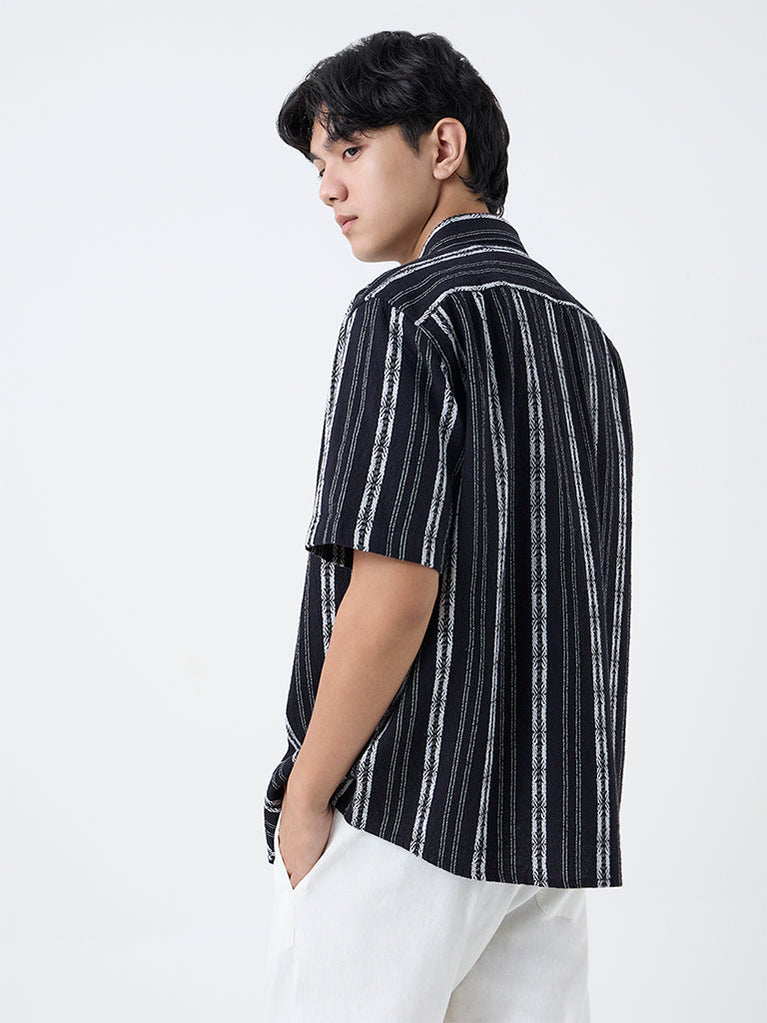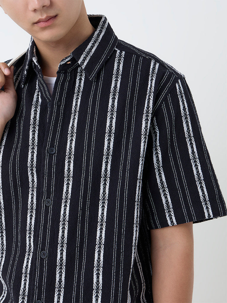Ascot Black Striped Relaxed-Fit Shirt