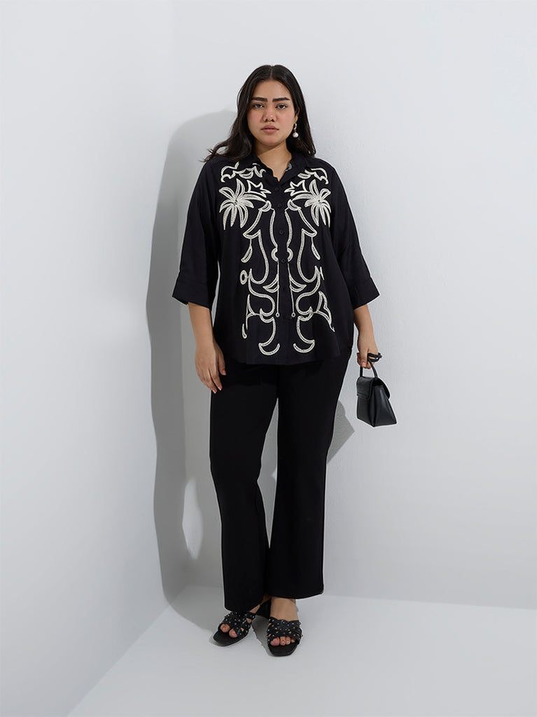 ETA Black Embroidered Relaxed-Fit Cotton Shirt