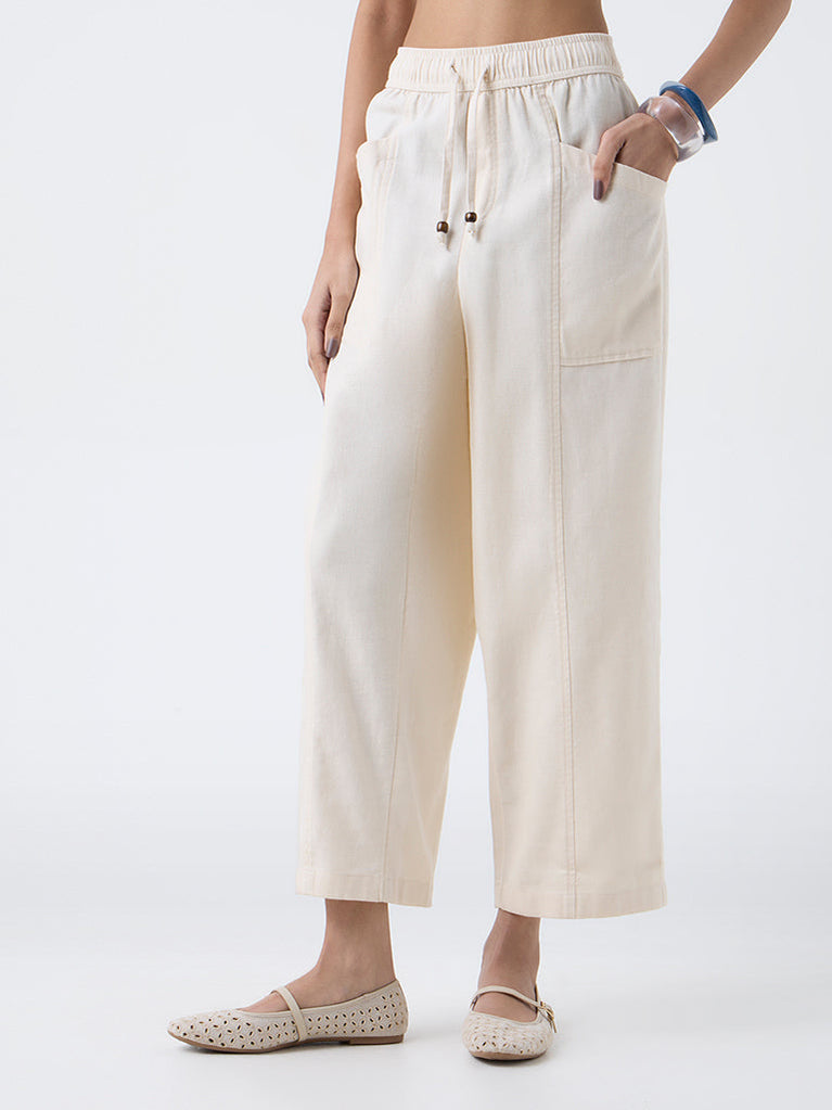 Bombay Paisley Off-White Solid Cotton-Blend Pants
