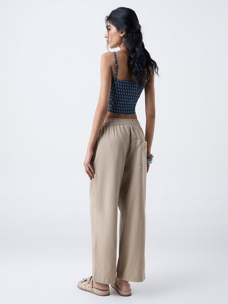 For moments when comfort tops the list but style still matters, these beige pants from Bombay Paisley deliver the perfect balance. The elasticated waistband with a drawstring gives a personalised fit, while the straight-cut profile keeps the look clean and effortless. Pure cotton construction ensures breathability during warm weather.