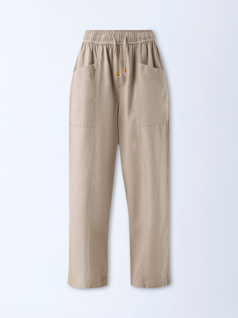 Bombay Paisley Beige Solid Cotton-Blend Pants