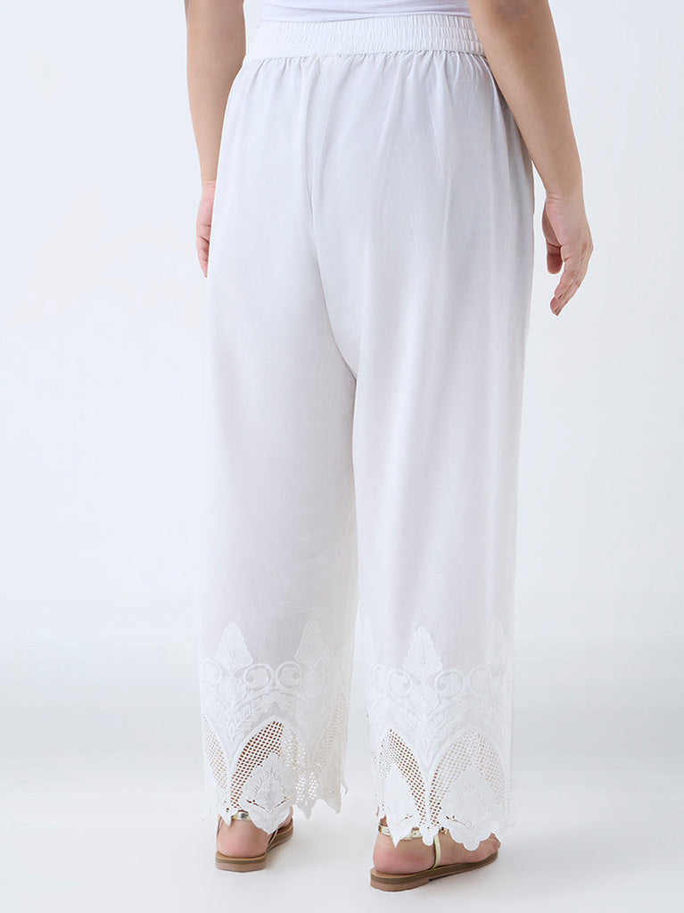 Diza White Floral Embroidered Ethnic Pants