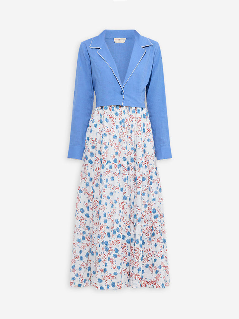 Bombay Paisley Blue Floral Cotton Tiered Dress with Jacket