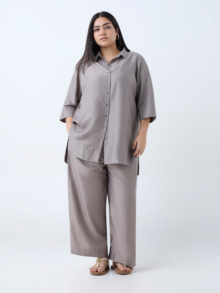 Infuse your day with breezy sophistication in these wide-leg off-white pants by Bombay Paisley. Crafted from pure cotton, they feature belt loops, a button closure, and a zipper placket for a structured yet relaxed fit. The front pockets highlight tonal floral embroidery, adding a subtle touch of artistry, while the braided belt completes the look.
