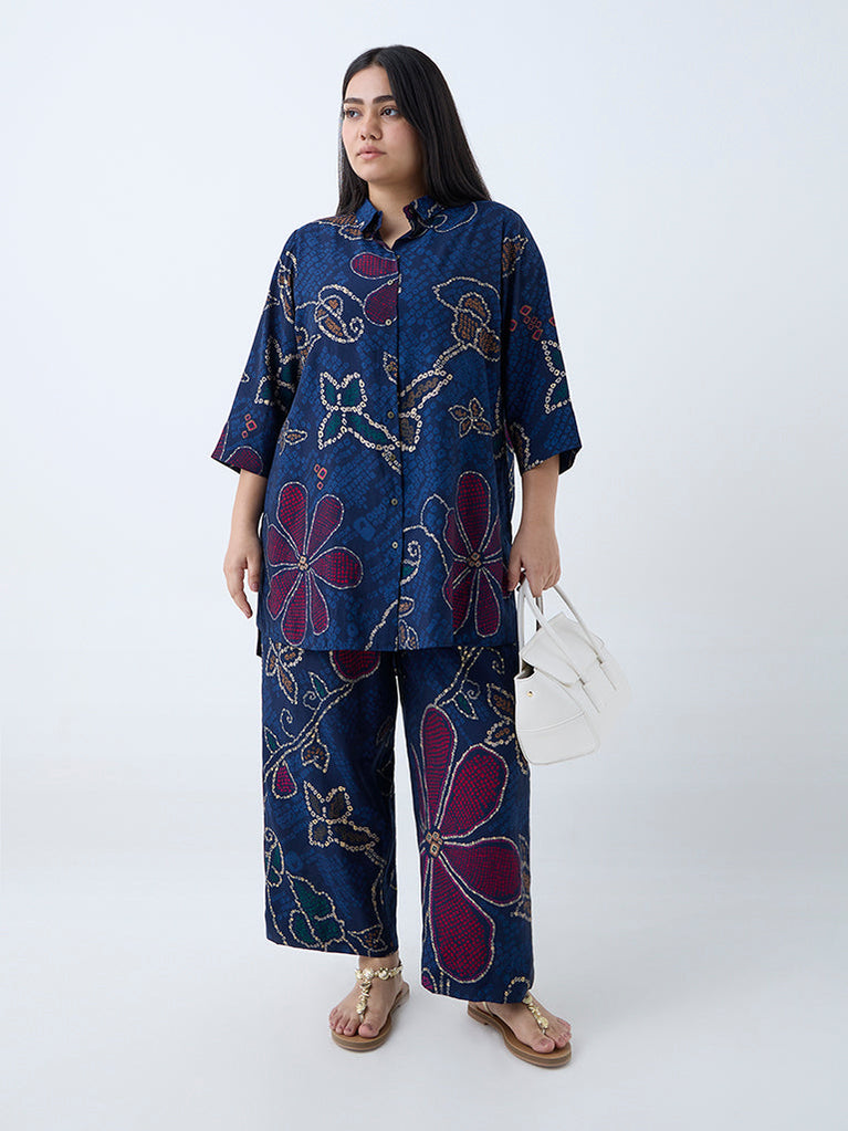 This indigo tunic from Diza is patterned with bandhani floral motifs that lend it an artisanal feel. Made from a lightweight fabric, it includes a collar, a button placket, and three-quarter sleeves that offer comfort with structure.