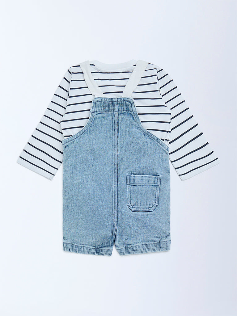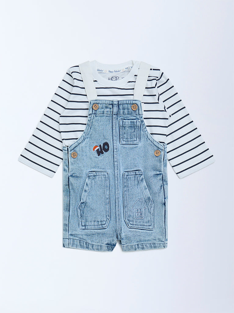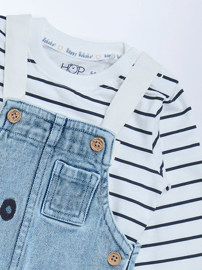 HOP Baby Blue Denim Dungaree with T-Shirt Set