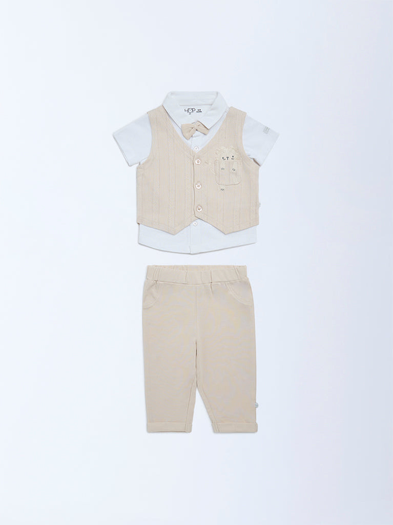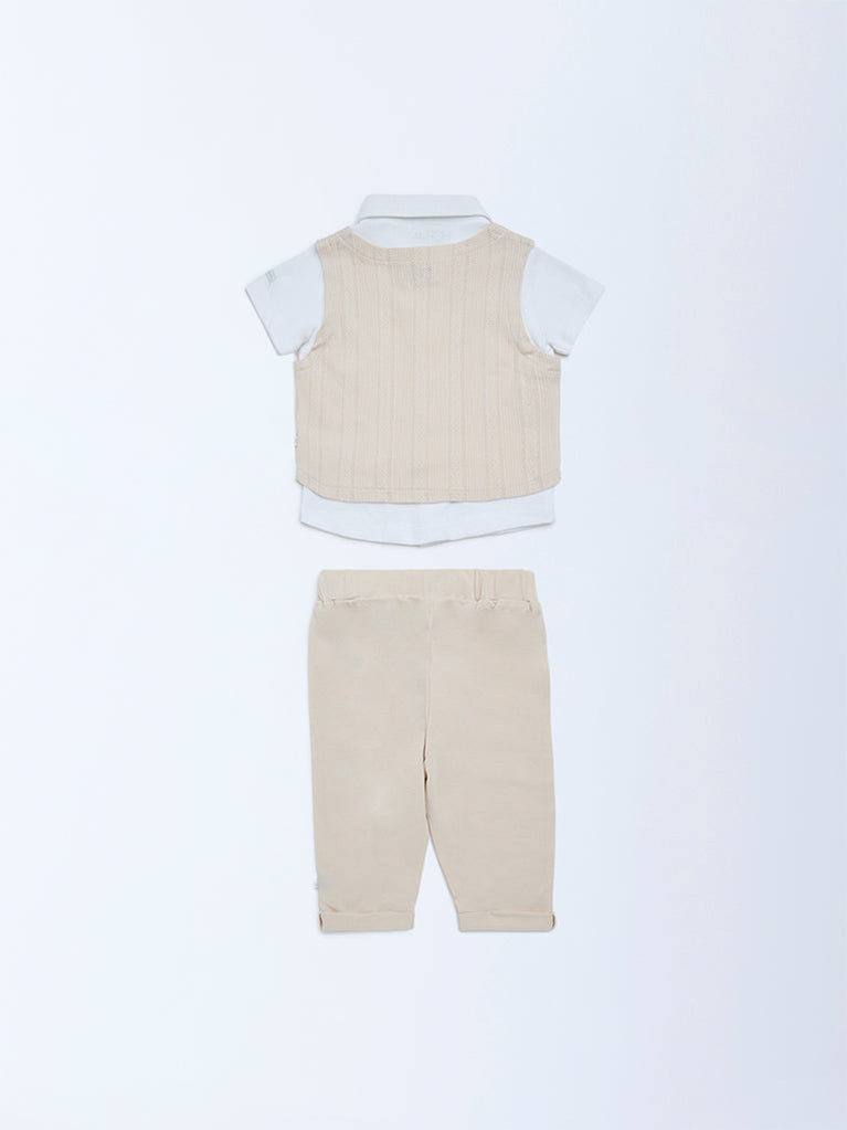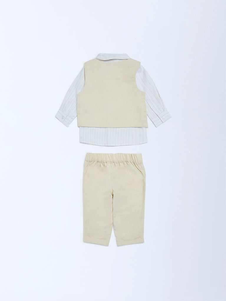 HOP Baby Beige Cotton Waistcoat, Shirt and Pants Set