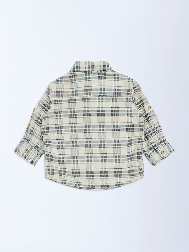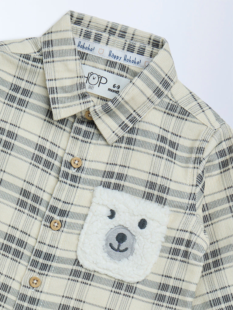 HOP Baby Cream Check Printed Cotton Shirt