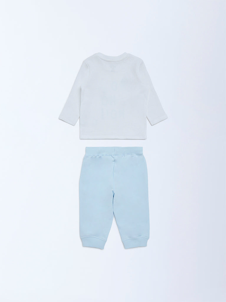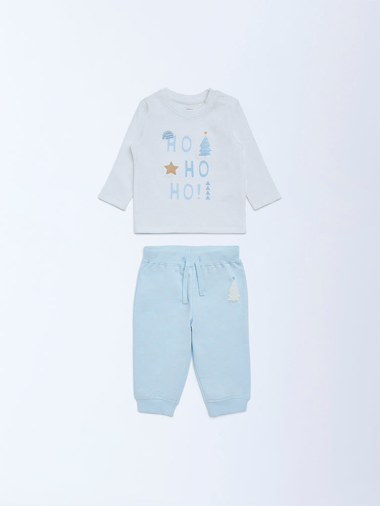 HOP Baby Blue Christmas-Themed Cotton T-Shirt and Joggers Set