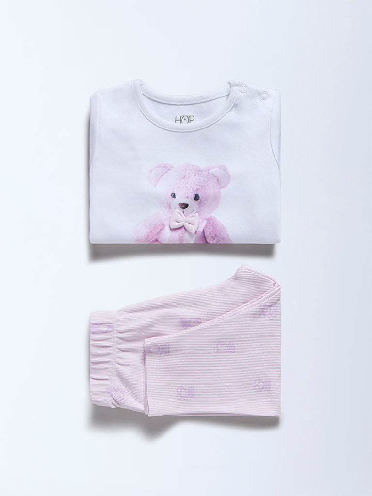 HOP Baby Lilac Teddy Printed Cotton T-Shirt and Pants Set - Exclusive