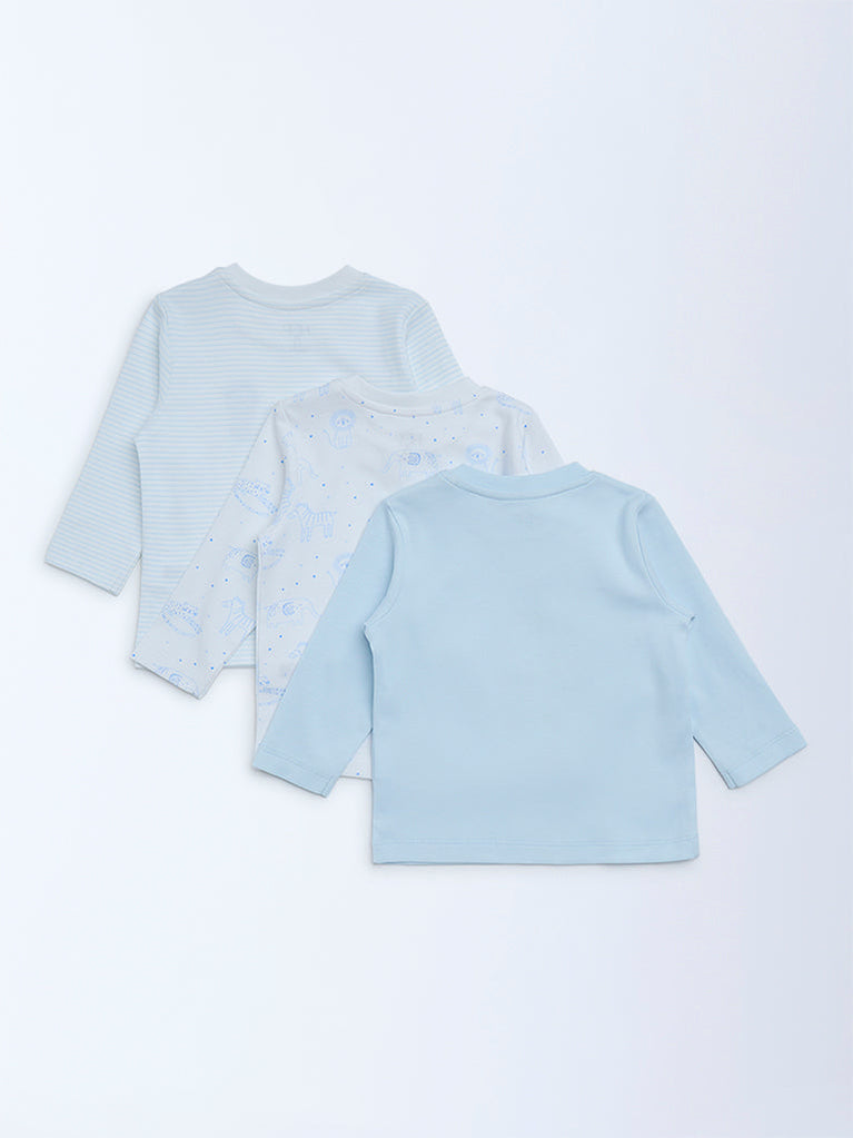 HOP Baby Boys Light Blue Cotton T-Shirts - Pack of 3