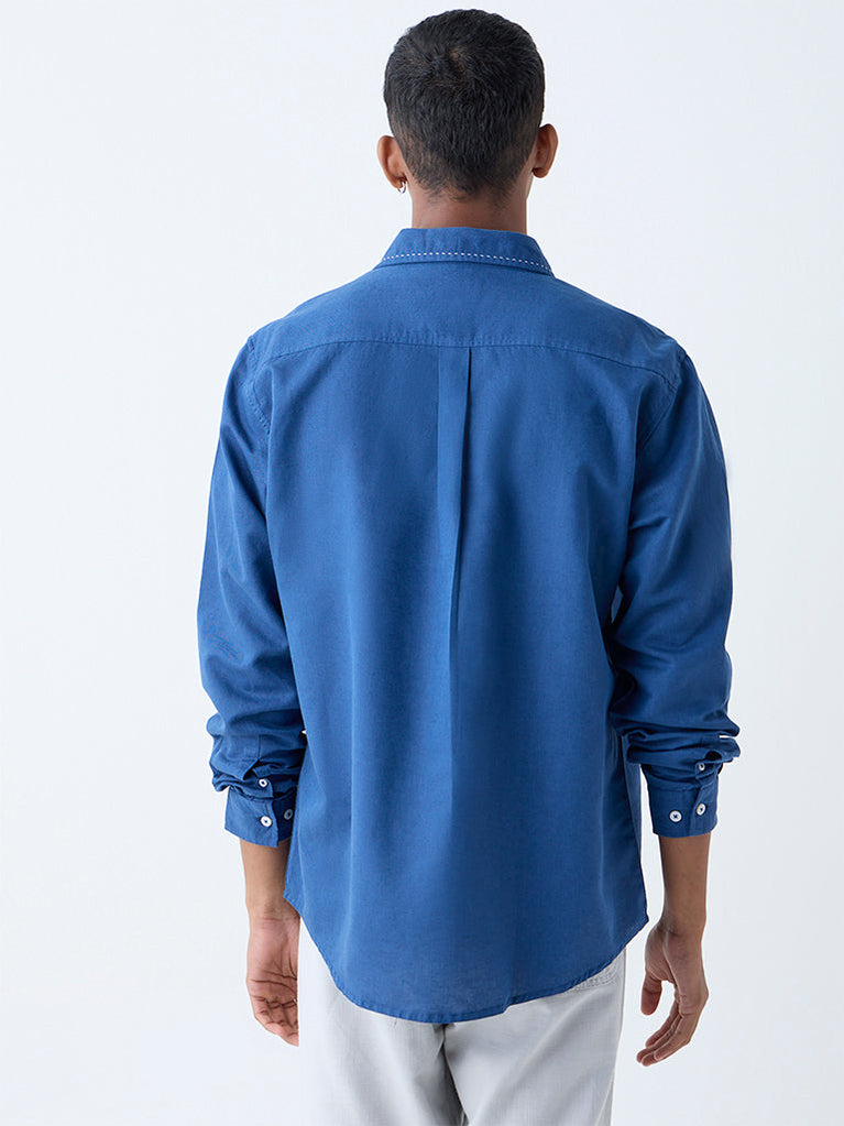 Refined and poised, this navy shirt from Ascot is crafted from soft, premium linen-blend fabric, offering effortless comfort for long wear hours. It is designed with a band neck, a buttoned placket and full sleeves for a timeless look. Framed in a relaxed-fit, it delivers an understated elegance, making it perfect for casual and everyday wear.