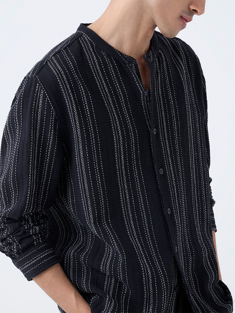 ETA Black Striped Relaxed-Fit Cotton Shirt