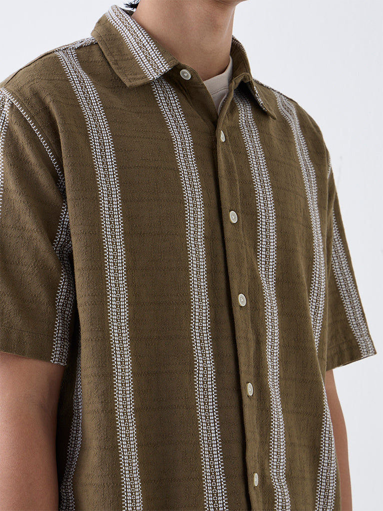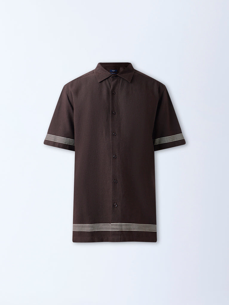 Ascot Dark Brown Striped Relaxed-Fit Shirt