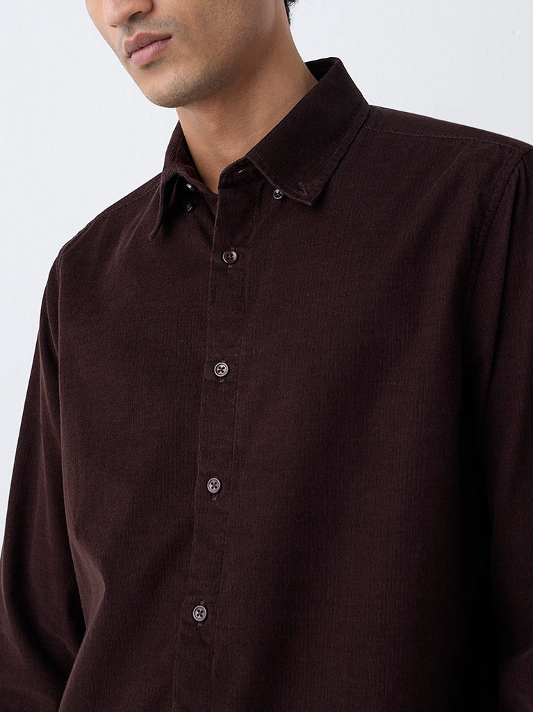 Ascot Dark Brown Relaxed-Fit Corduroy Shirt