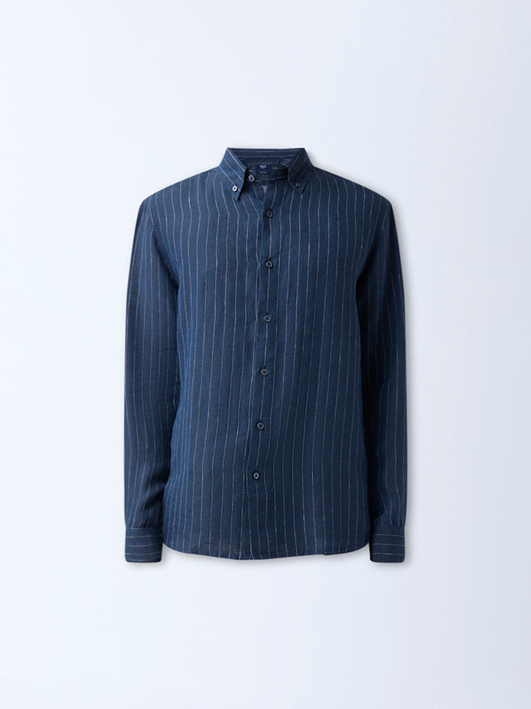 Ascot Navy Striped Relaxed-Fit Linen Shirt