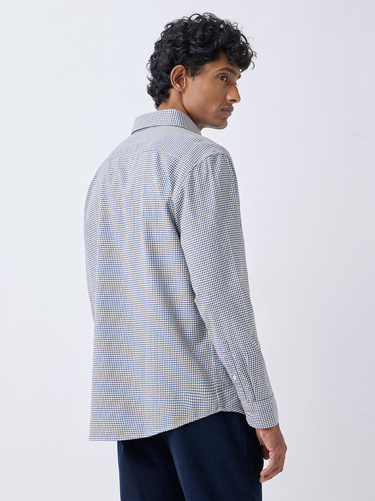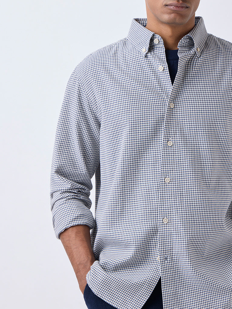 Ascot Blue Houndstooth Checks Relaxed-Fit Cotton Shirt