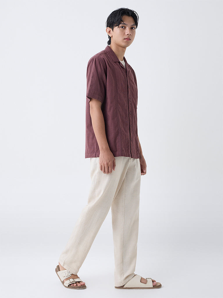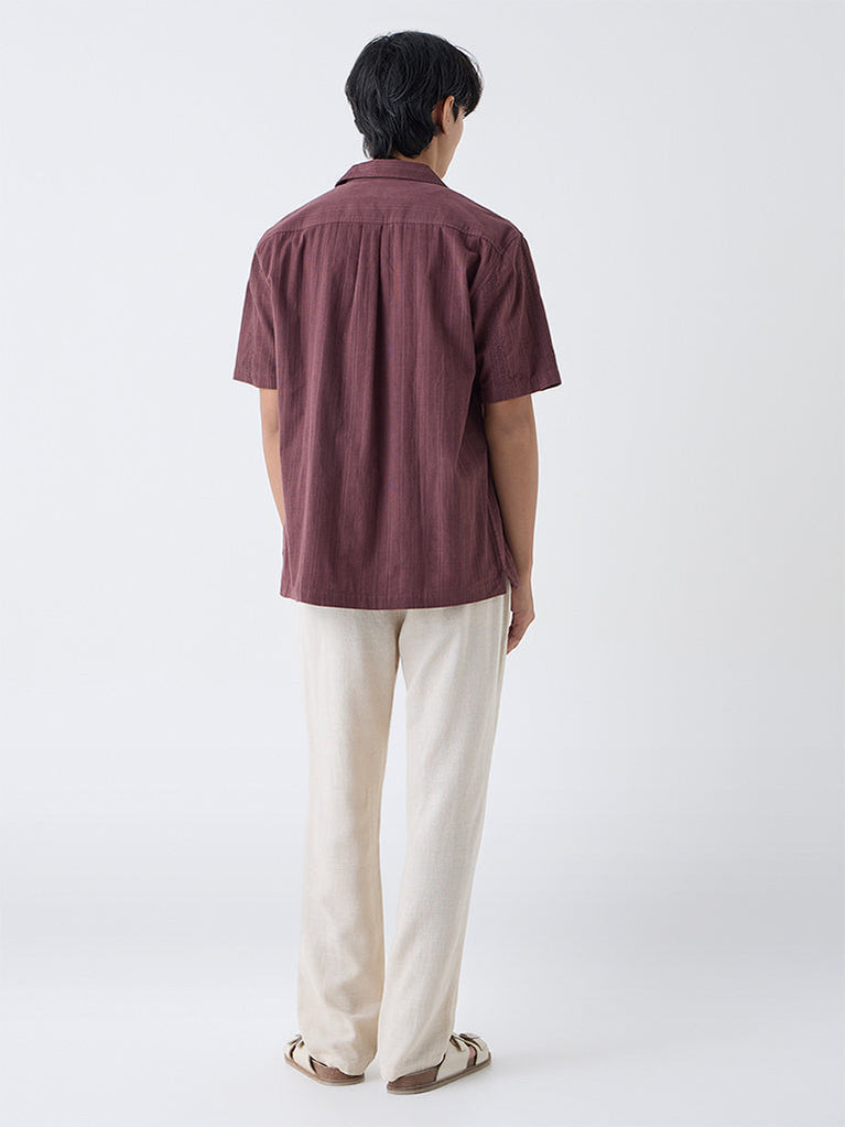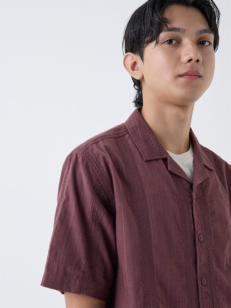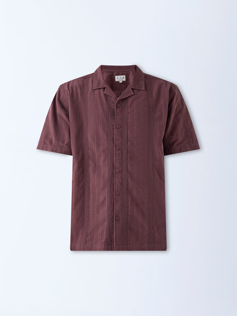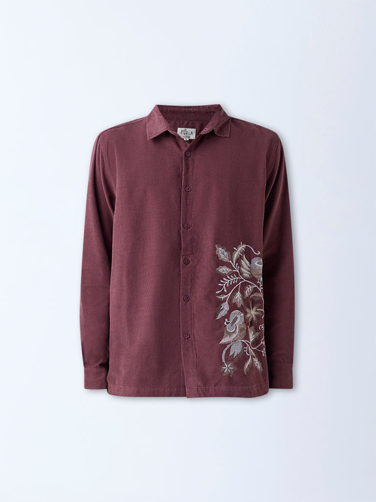 ETA Burgundy Embroidered Relaxed-Fit Cotton Shirt