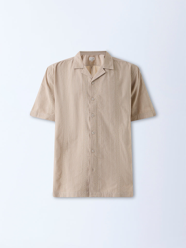 ETA Light Beige Embroidered Relaxed-Fit Cotton Shirt