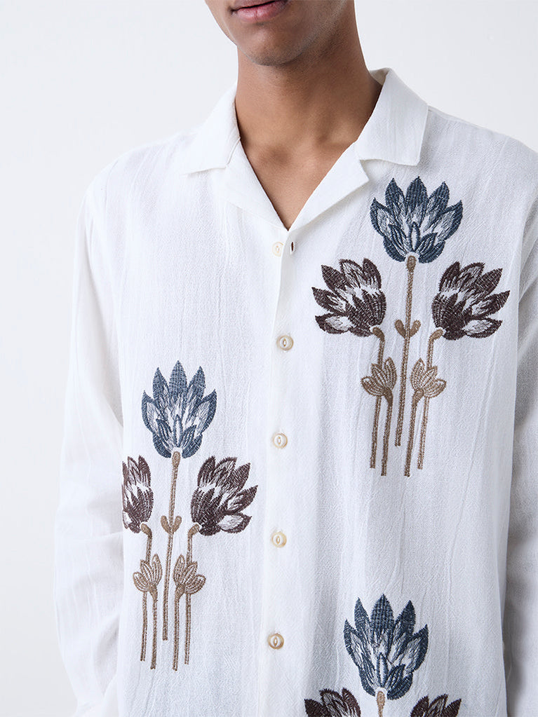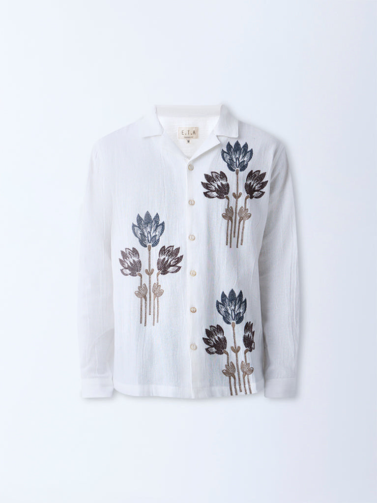 ETA White Floral Embroidered Relaxed-Fit Cotton Shirt