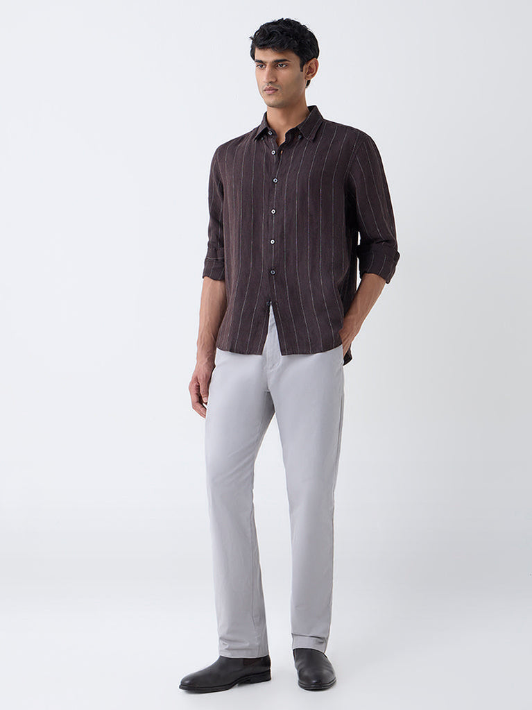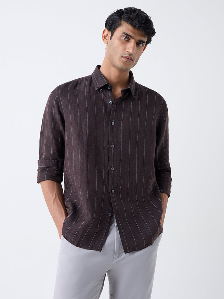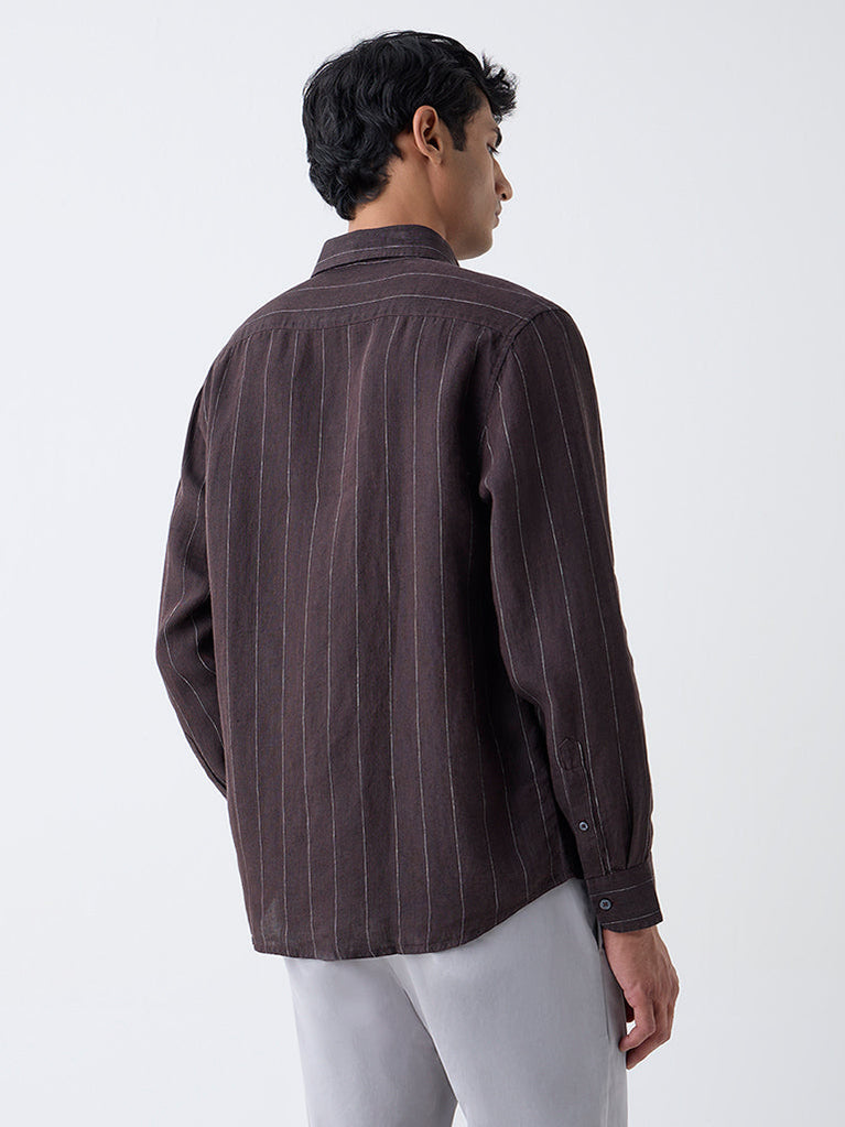 Ascot Dark Brown Striped Relaxed-Fit Linen Shirt