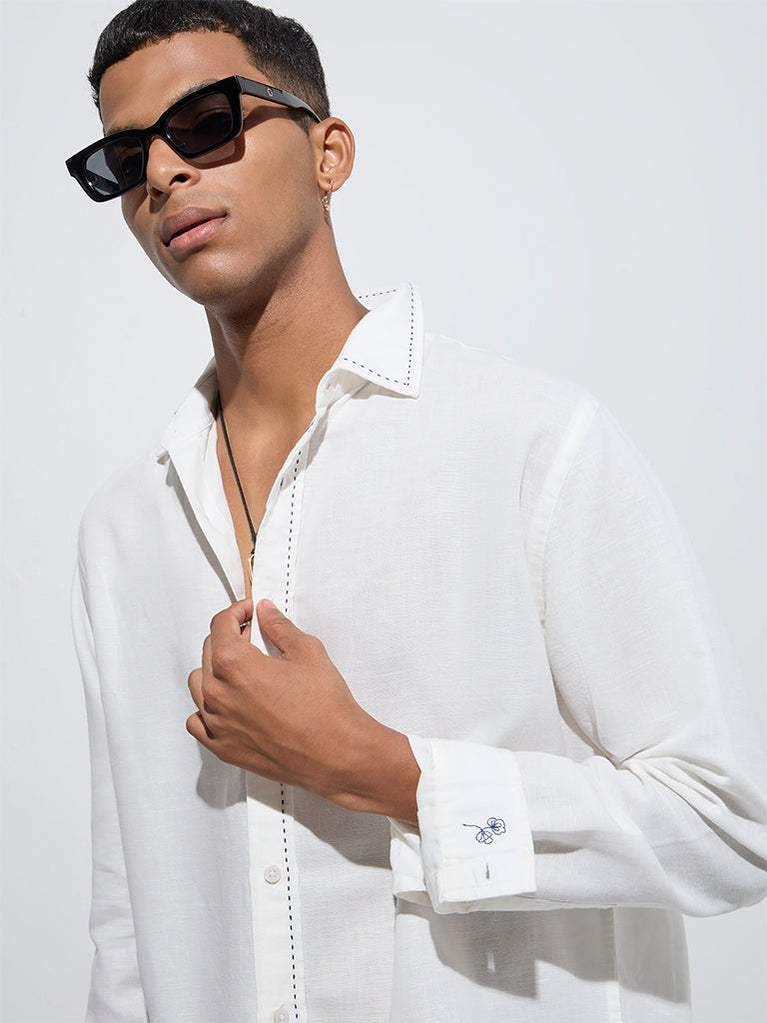 ETA White Floral Embroidered Relaxed-Fit Cotton Shirt