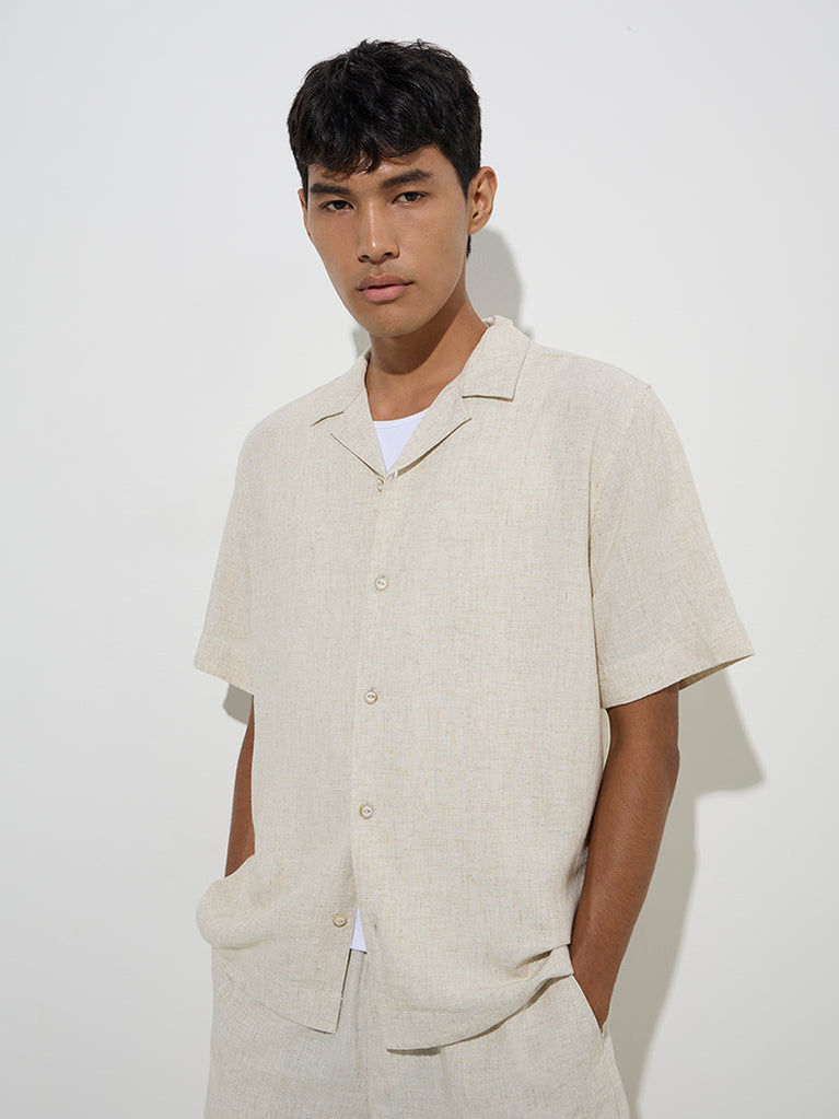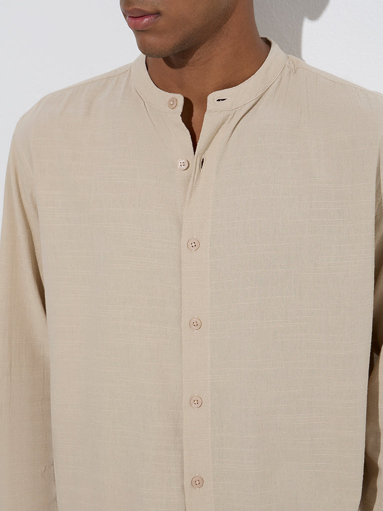 ETA Beige Solid Relaxed-Fit Cotton-Blend Shirt