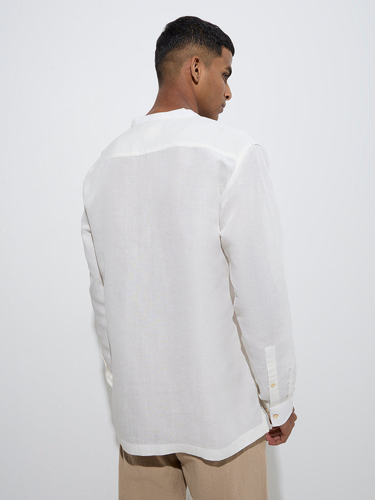 ETA White Embroidered Relaxed-Fit Linen Shirt