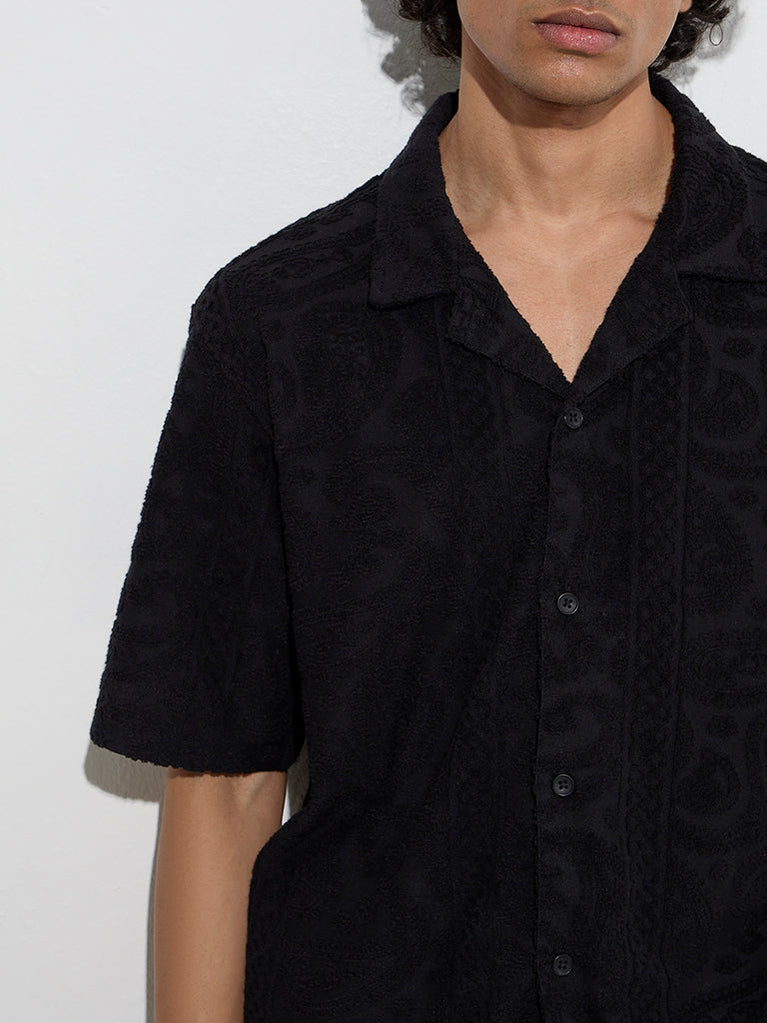ETA Black Paisley Design Relaxed-Fit Cotton-Blend Shirt