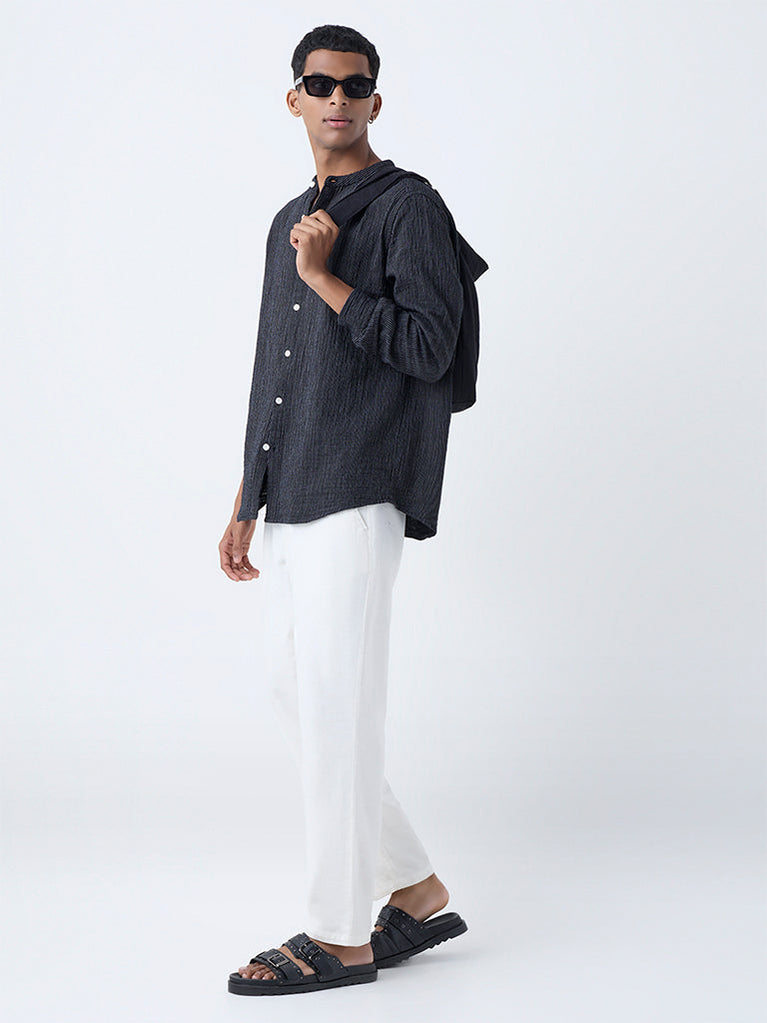 ETA Black Striped Relaxed-Fit Cotton Shirt