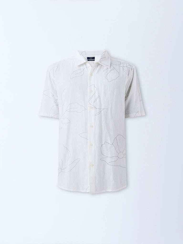 Ascot Off-White Abstract Pattern Relaxed-Fit Shirt