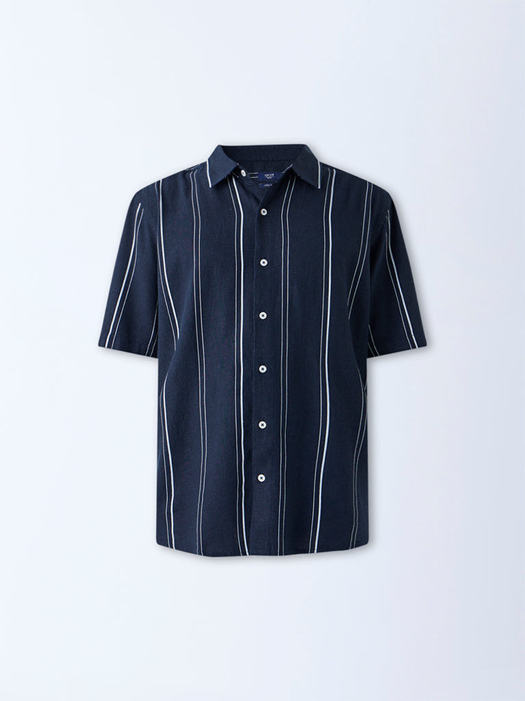Channel effortless sophistication with this navy shirt from Ascot. Crafted from a breathable linen-blend fabric, it features stripes, a classic collar and short sleeves. The seamless stitch and relaxed silhouette make it perfect for refined, casual occasions.