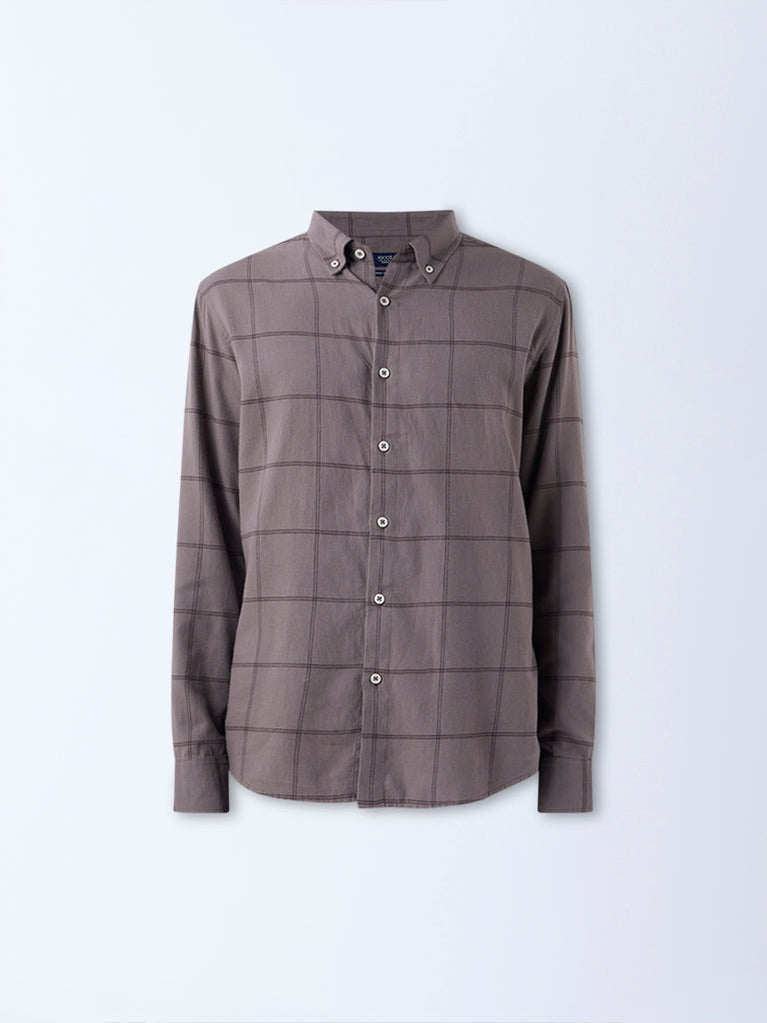 Ascot presents this taupe shirt that combines comfort with a classic edge. Woven in a cotton-rich fabric, it features checkered patterns across a relaxed silhouette. Detailed with a button-down collar, full sleeves and a functional front pocket, it makes an effortless choice for casual outings and weekend wear.