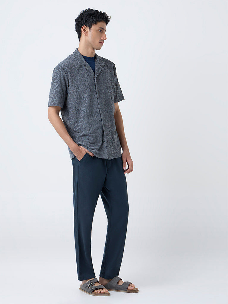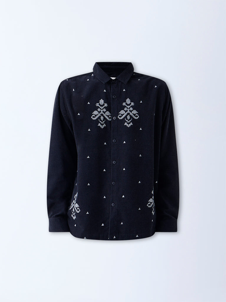 ETA Dark Teal Embroidered Relaxed Fit Cotton Shirt