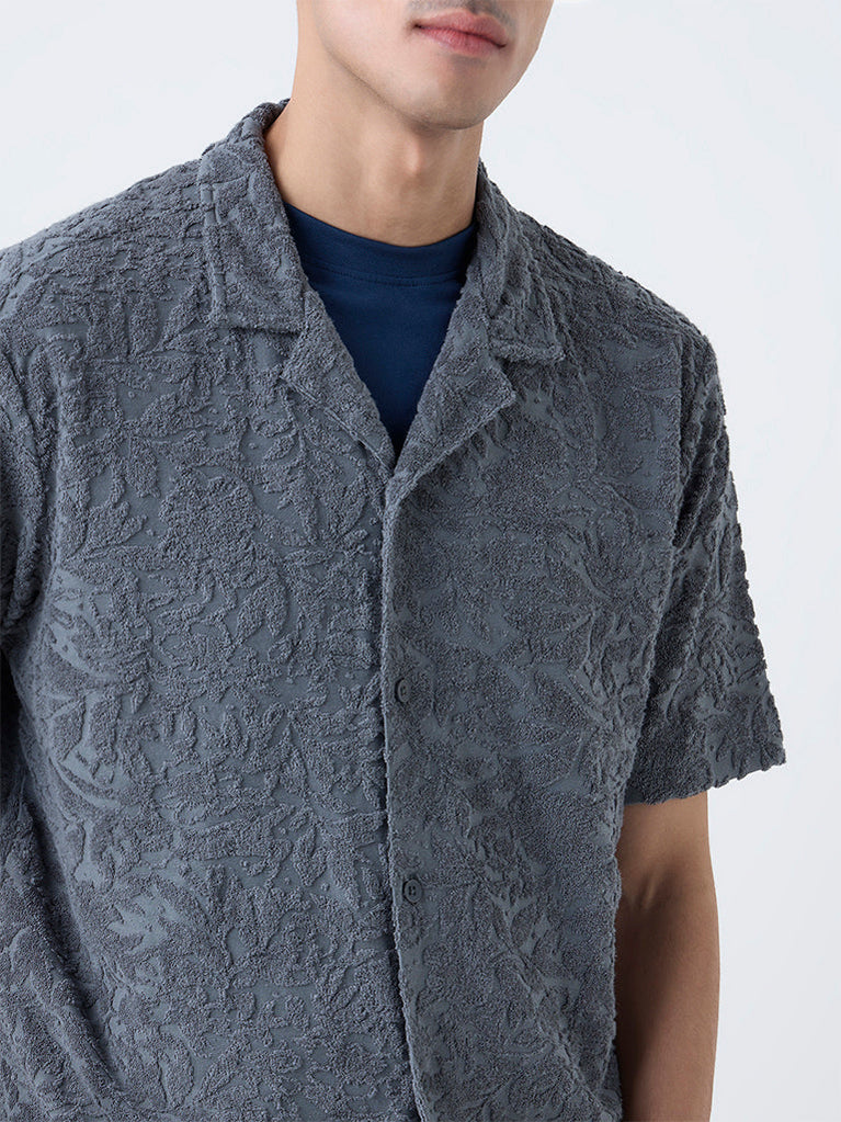 ETA Grey Floral Textured Relaxed-Fit Cotton-Blend Shirt