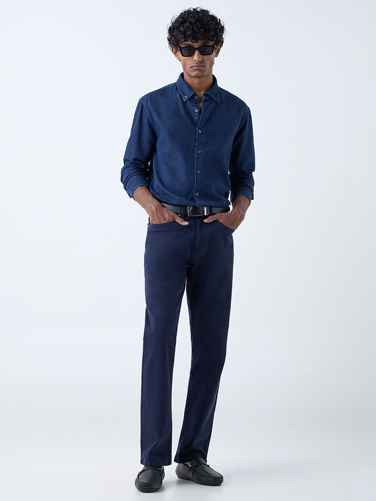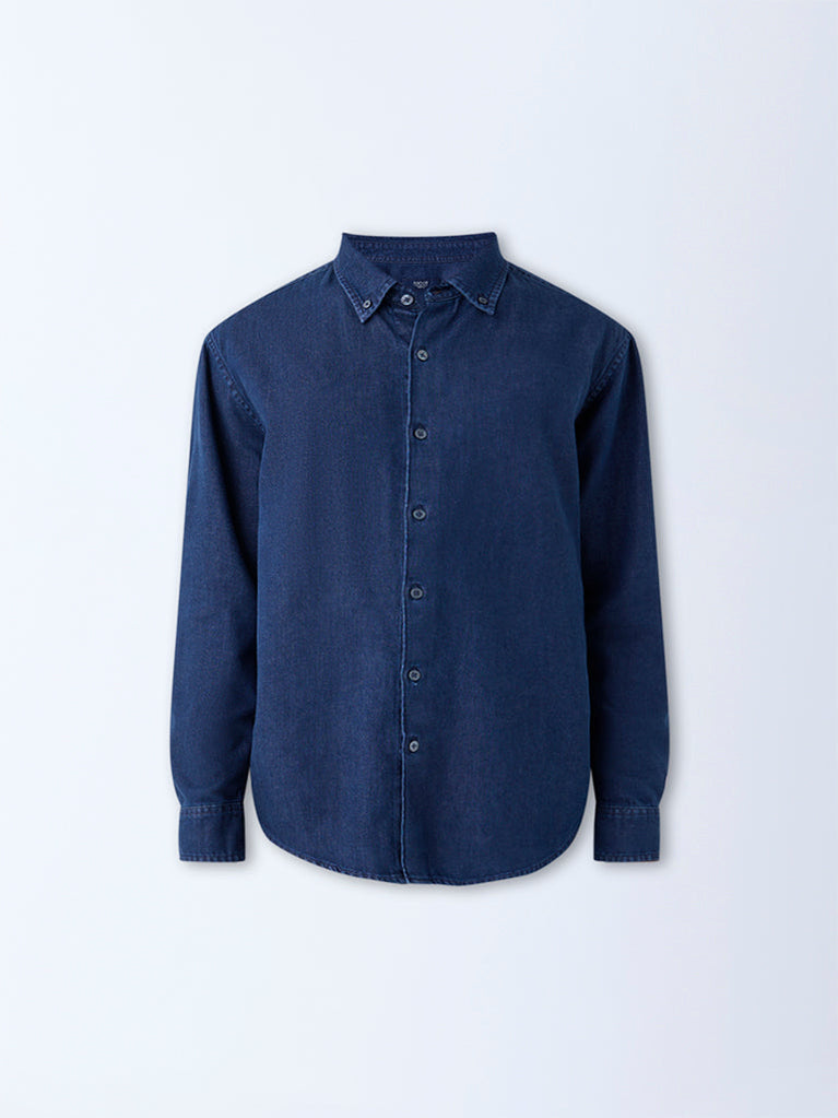 A smart take on casual staples, this dark blue denim shirt from Ascot blends classic styling with everyday ease. The button-down collar and full sleeves offer a nod to tailored classics, while the breathable fabric and relaxed silhouette ensure modern comfort.