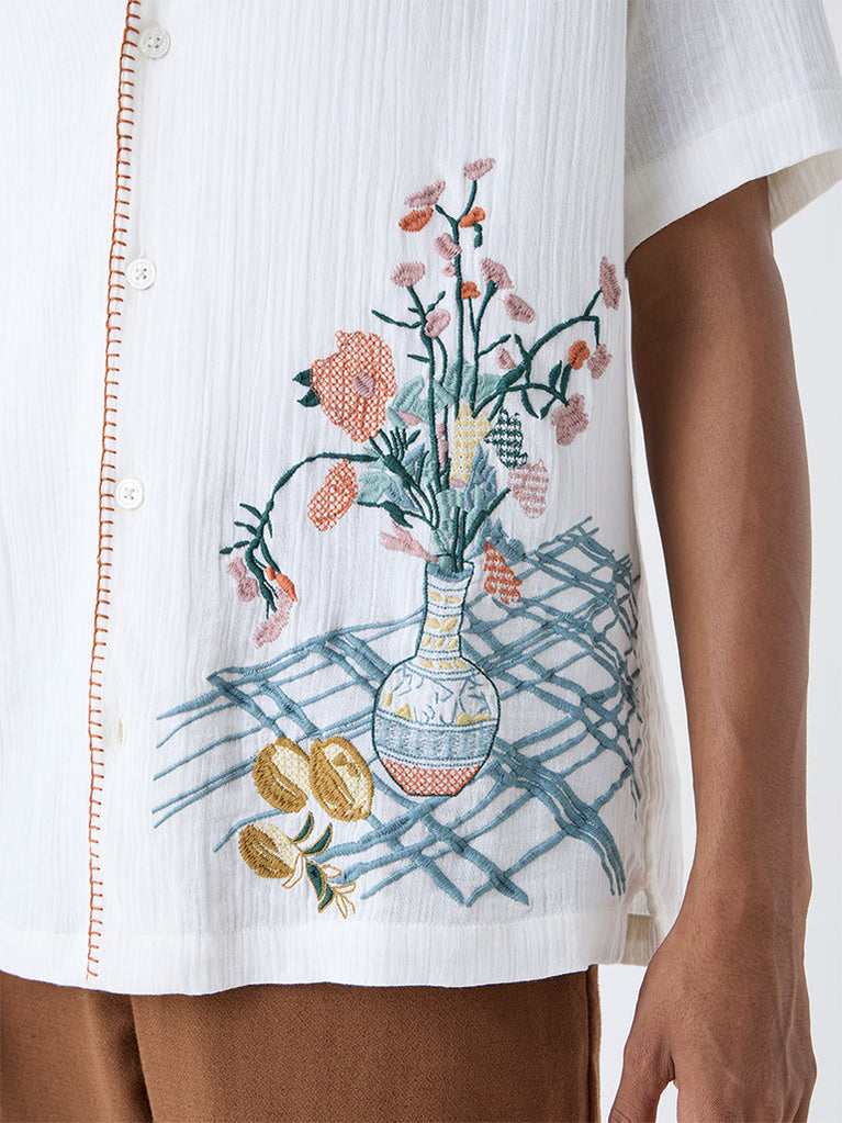 ETA White Embroidered Resort-Fit Cotton Shirt