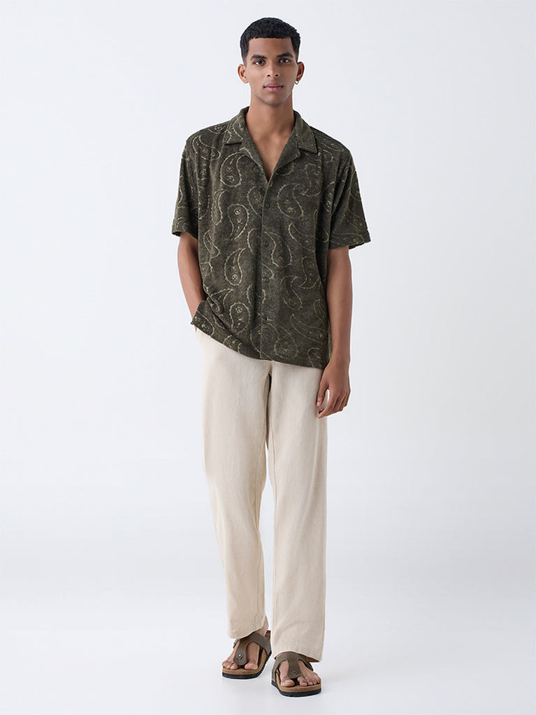 ETA Olive Paisley Relaxed-Fit Cotton-Blend Shirt