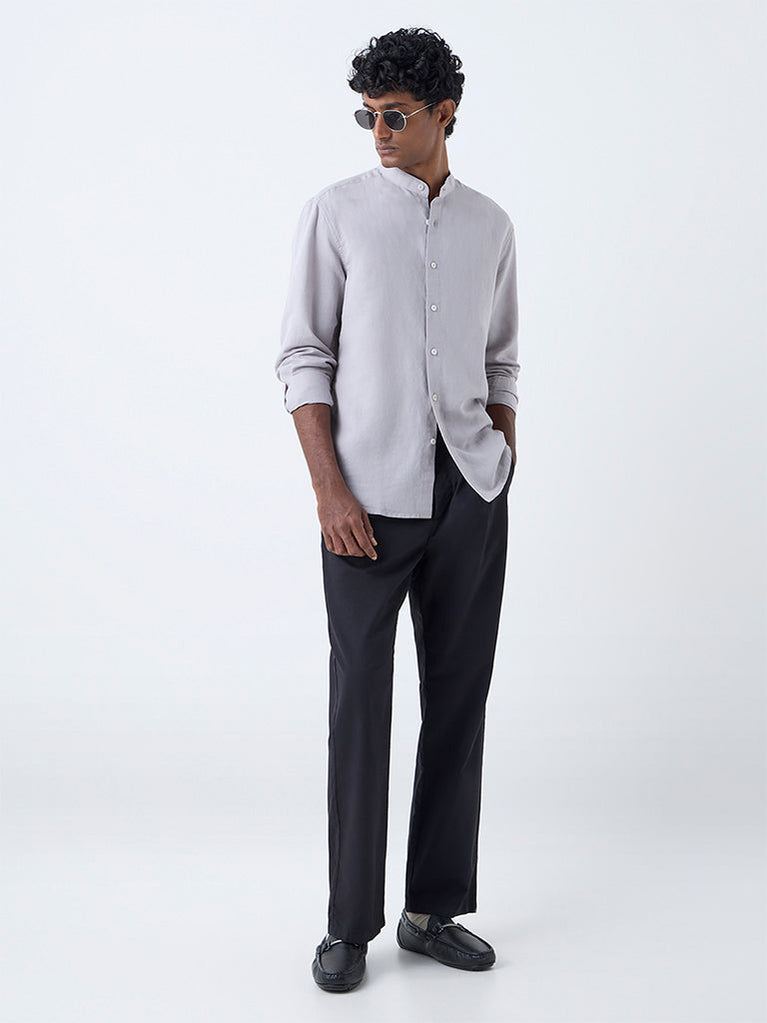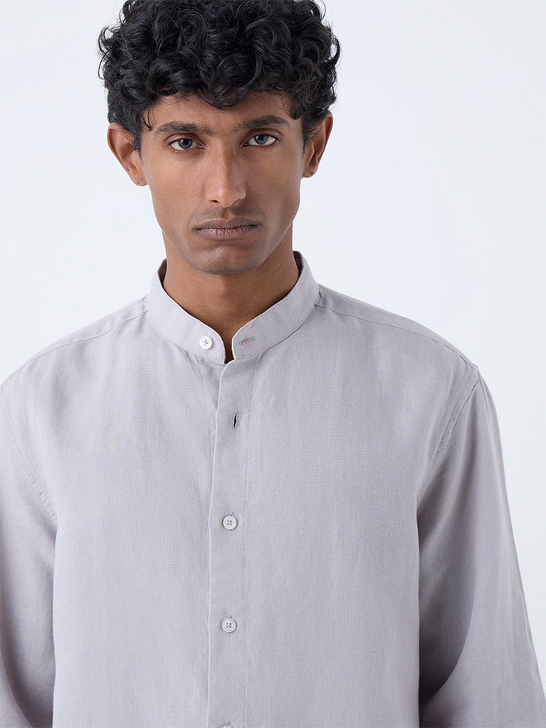 Timeless and versatile, this grey shirt from Ascot is tailored from a premium linen-blend fabric in a relaxed frame. Styled with a mandarin-neck collar, button-up front and full sleeves, it delivers quiet sophistication, making it an effortless choice for smart-casual occasions.