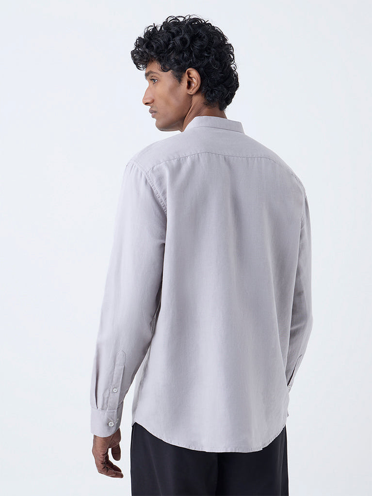 Ascot Grey Relaxed-Fit Linen-Blend Shirt