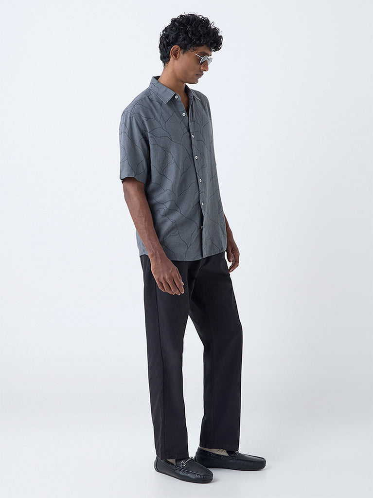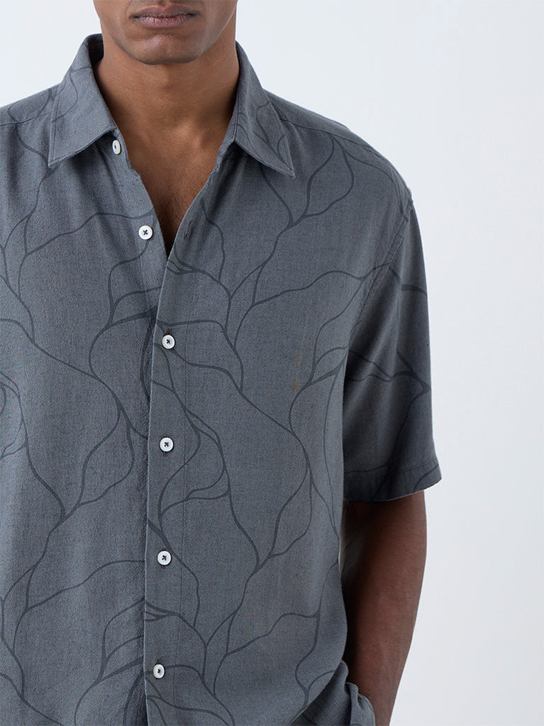 Ascot Grey Abstract Pattern Relaxed-Fit Shirt